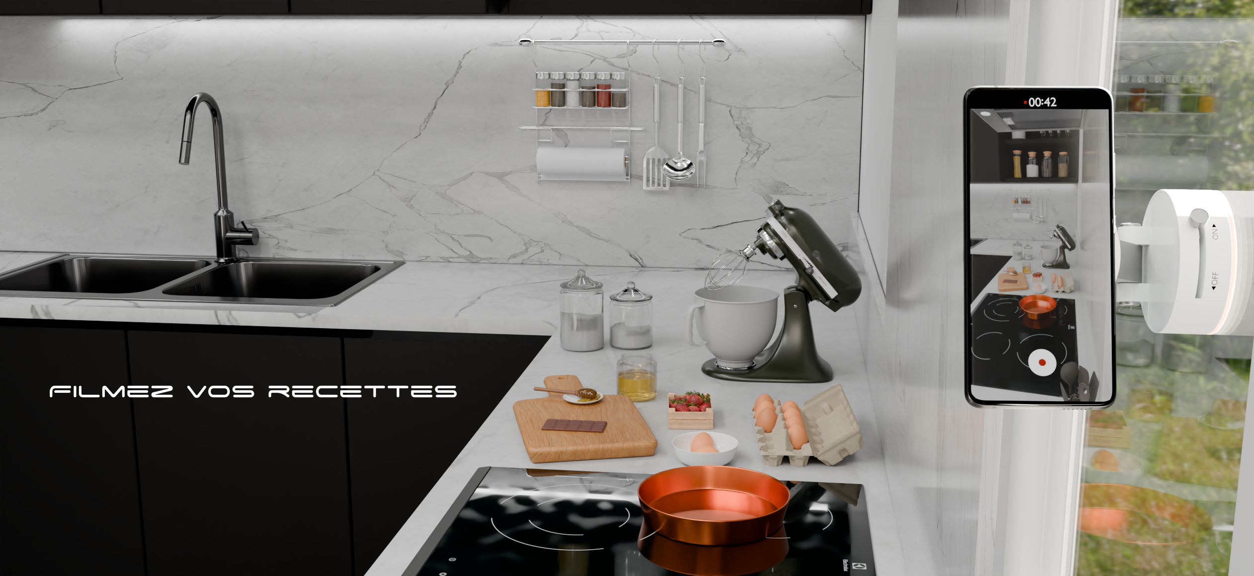 Transformez votre expérience culinaire avec le support MOVO dans votre cuisine. Fixez votre smartphone sur n'importe quelle surface plane et accédez facilement à vos recettes préférées, tutoriels vidéo ou listes d'ingrédients.